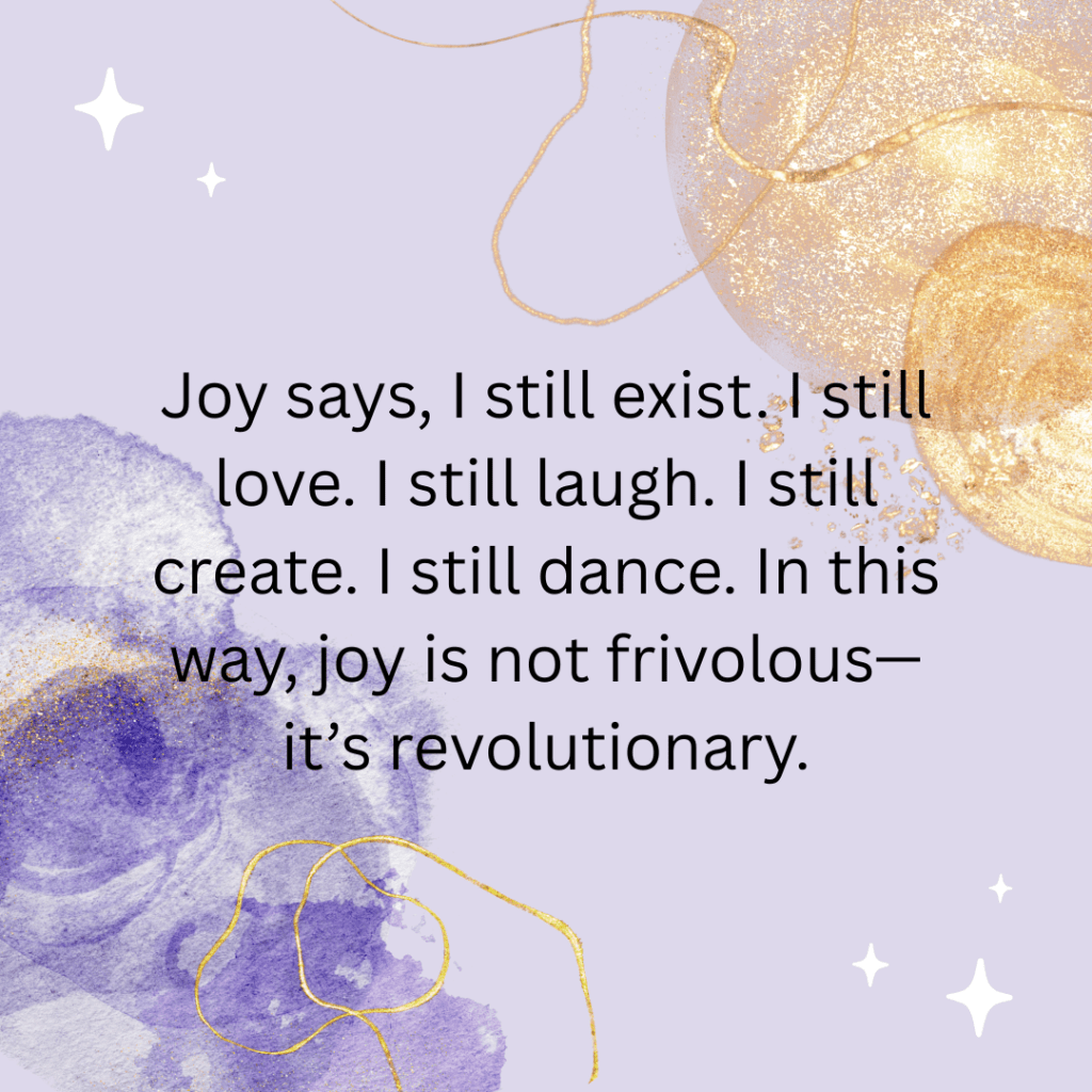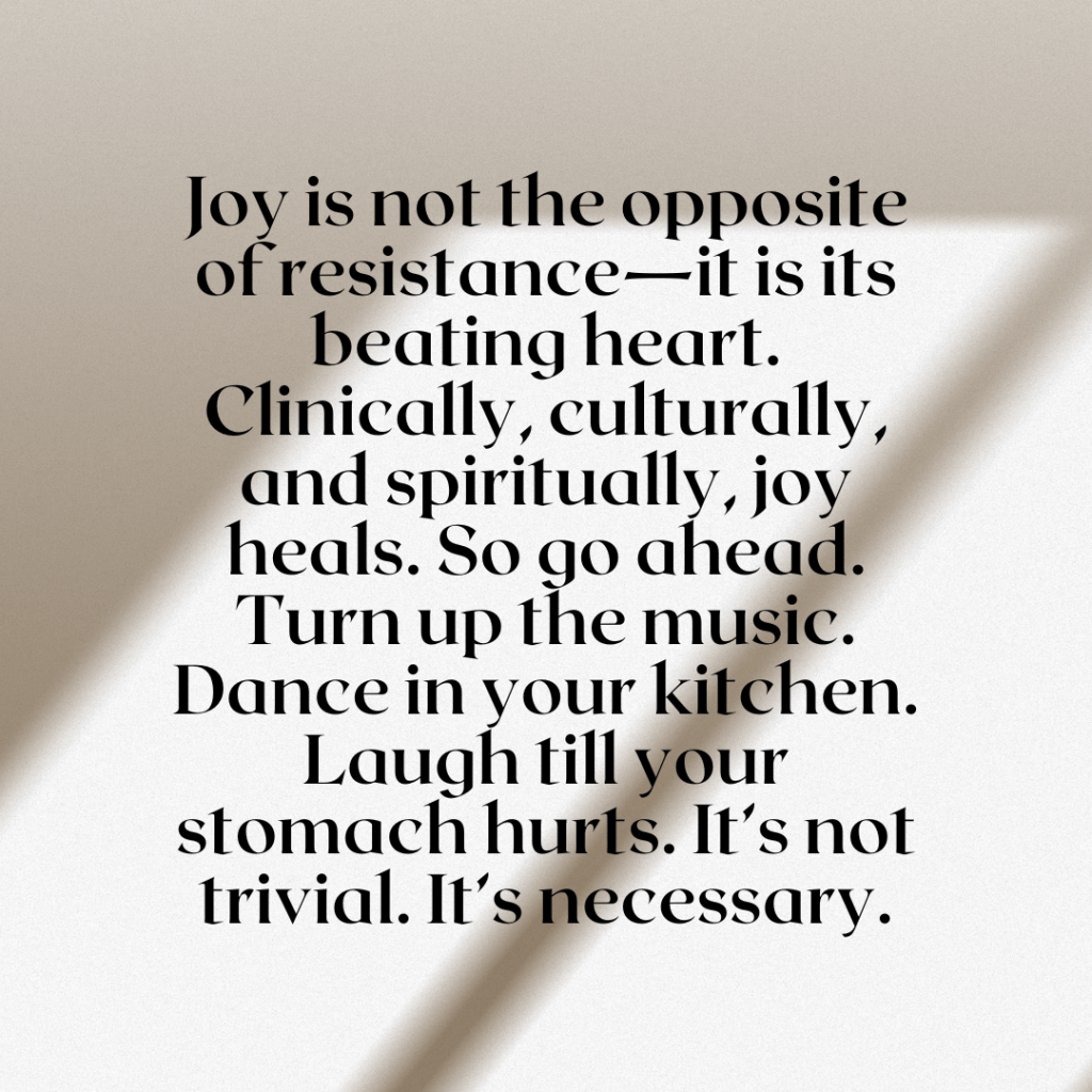 This is your reminder: Your joy is not an accessory to your activism. It is part of your liberation. Protect it. Practice it. Pass it on.